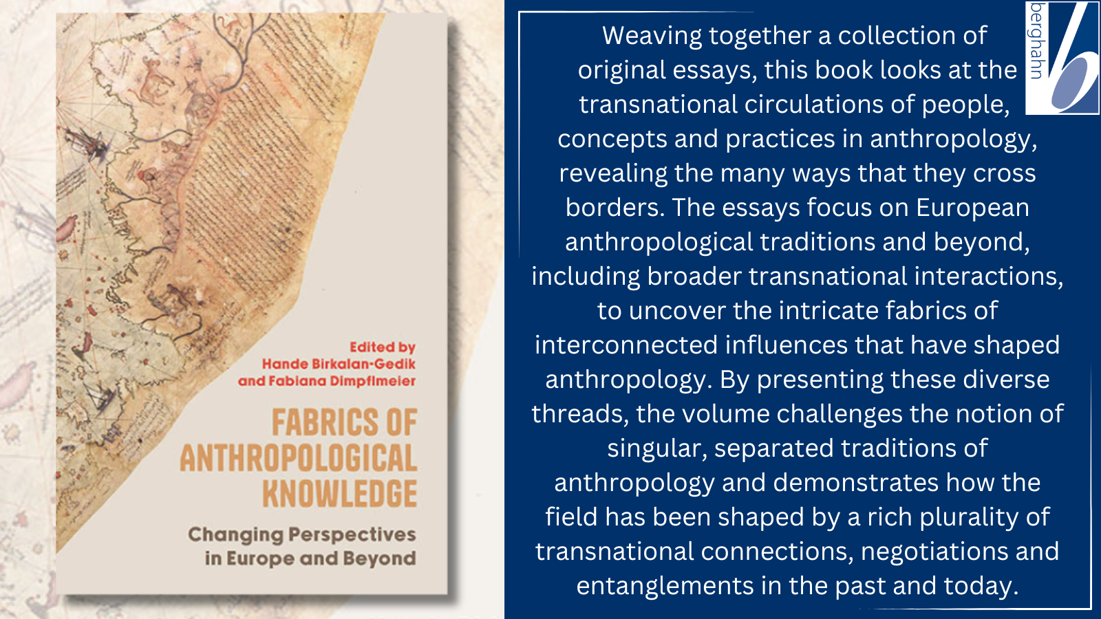 New Publication: Fabrics of Anthropological Knowledge by Hande Birkalan-Gedik and Fabiana Dimpflmeier, eds. Open Access. https://www.berghahnbooks.com/title/Birkalan-GedikFabrics. The volume has been made available under a CC BY (International) license thanks to the support of Georg und Franziska Speyer'sche Hochschulstiftung and the Open Access Publication Fund of Goethe University Frankfurt am Main.