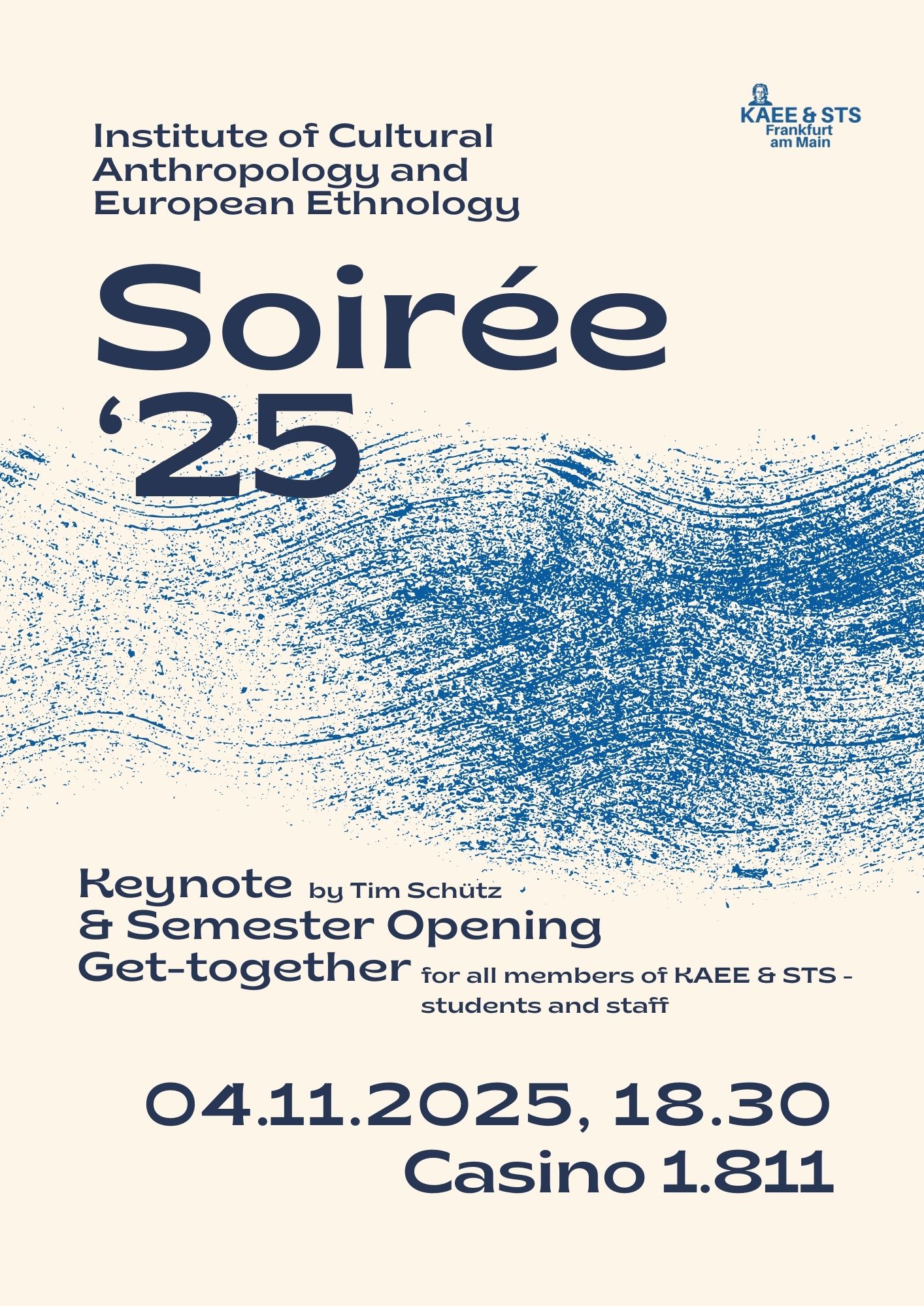 Dieses abendliche Zusammenkommen bietet die Gelegenheit, rollen- und themenübergreifend ins Gespräch zu kommen, den Semesterstart zu feiern, neue Gesichter willkommen zu heißen und uns als Gemeinschaft wieder miteinander zu verbinden. Durch informelle Gespräche, eine kurze Keynote von Tim Schütz, Getränke und einige leichte gemeinsame Übungen wollen wir darüber reflektieren, wer wir als Institut sind – und wer wir vielleicht werden könnten.