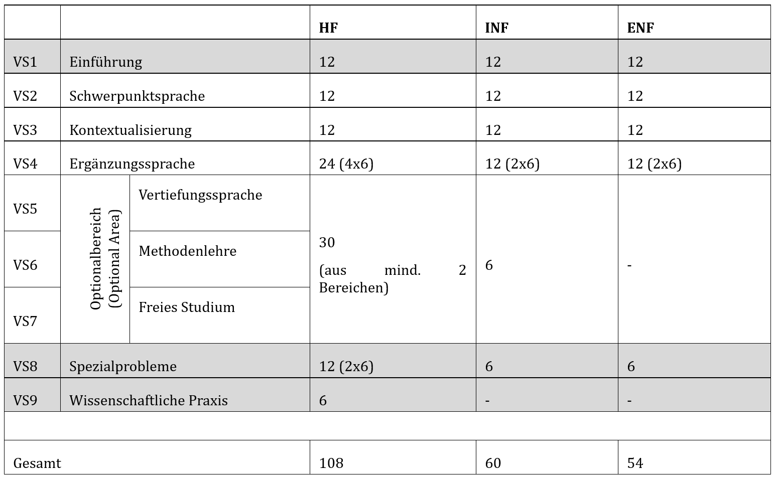Studienanfänger erwartet im ersten Semester eine Einführung, in der wir uns mit Sprachfamilien, Sprachverwandtschaft und historischen Aspekten des Sprachvergleichs beschäftigen (Veranstaltungstitel "Sprachverwandtschaft und Sprachvergleich" (VS1)). Diese Veranstaltung sollte nach Möglichkeit sowohl von Hauptfächlern als auch von Nebenfächlern direkt im ersten Semester besucht werden. Dort werden zu Beginn auch schwerpunktspezifische organisatorische Fragen geklärt. Im zweiten Semester steht dann der verwandtschaftsunabhängige Sprachvergleich im Vordergrund, d.h. die Gegenüberstellung von Sprachen nach grammatischen / typologischen Gesichtspunkten. Parallel werden die linguistischen Grundlagen erworben (allgemeiner Pflichtbereich) und die ersten frei wählbaren Sprachkurse besucht. Bei der Sprachenwahl stehen wir beratend zur Seite und entwickeln für jeden Studierenden ein individuelles Studienprofil. Jeder Studierende sollte im Laufe des ersten Semesters einmal zur Schwerpunktberatung kommen, um einen sinnvollen Studienplan zu erstellen. Bitte füllen Sie dazu den Studienverlaufsplan (oben rechts unter "Downloads") soweit Sie können aus und kommen Sie in die Sprechstunde der Schwerpunktbeauftragten, um den Plan kurz durchzusprechen.