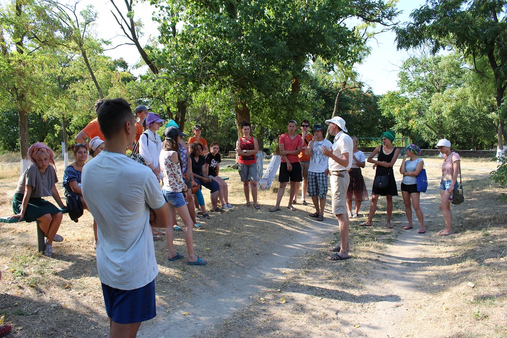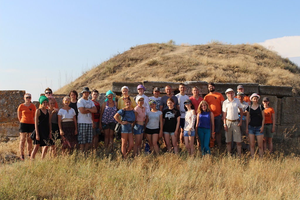 Dank der erneuten Auslandsmittelzuweisung seitens der Goethe-Universität Frankfurt konnte in der Grabungskampagne 2017 des deutsch-ukrainischen Kooperationsprojektes erneut eine Archaeological Field School durchgeführt werden, an der 27 Studierende der Goethe-Universität sowie der Abteilungen für Museums- und Kulturwissenschaften der Charkover Staatsakademie für Kultur teilnahmen (Abb. 1). Durch eine gegenüber dem Vorjahr noch aktivere Einbindung der Frankfurter Studierenden, die bereits über fundierte, in Teilen sogar Olbia-spezifische Ausgrabungskenntnisse verfügten, wurde zudem eine qualitativ neue Ebene der konkreten Wissensvermittlung angestrebt: Unter Aufsicht der Field School-Leitung hatten die Teilnehmer/innen aus Frankfurt nun ihrerseits die Möglichkeit, bereits erlerntes Wissen aktiv an die ukrainischen Studenten/innen weiterzugeben, wodurch von Anfang eine enge Teambildung gefördert werden sollte.