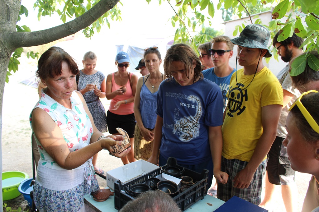 Wie im vergangenen Jahr stand an erster Stelle die Unterweisung der studentischen Teilnehmer/innen in alle direkt am Grabungsplatz anfallenden Prozesse, angefangen bei dem eigentlichen Grabungsvorgang (Abb. 2-3) über Bodenuntersuchungen, die fotografische sowie zeichnerische Dokumentation bis hin zu einer vorläufigen Klassifizierung der aufgefundenen Objekte.