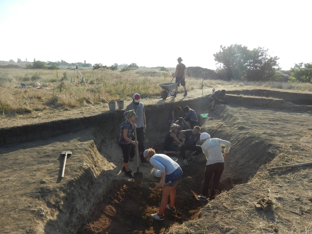 In der diesjährigen Grabungskampagne in Olbia Pontike, die im Zeitraum 20.07. – 30.08.2017 durchgeführt wurde, konnte in den beiden Grabungsarealen HEKP-4 und HEKP-7 außerordentlich wichtige Ergebnisse erzielt werden. So ist das deutsch-ukrainische Forscherteam beispielsweise nun in der Lage, die tatsächlichen Ausmaße des seit 2015 untersuchten Grabens zu rekonstruieren (Abb. 1). Als elementarer Bestandteil der frühesten Verteidigungsanlage Olbias gehörte er zu einer Wall-Graben-Konstruktion, die das eigentliche Siedlungsgebiet nach Westen hin absicherte. Zusammen mit den herausragenden Ergebnissen der geomagnetischen Untersuchungen (vgl. hier die Informationen zur Geomagnetik 2017) ermöglichen diese neuen Erkenntnisse eine umfassende Neubewertung der städtebaulichen Genese Olbias im 6./5. Jh. v. Chr.!