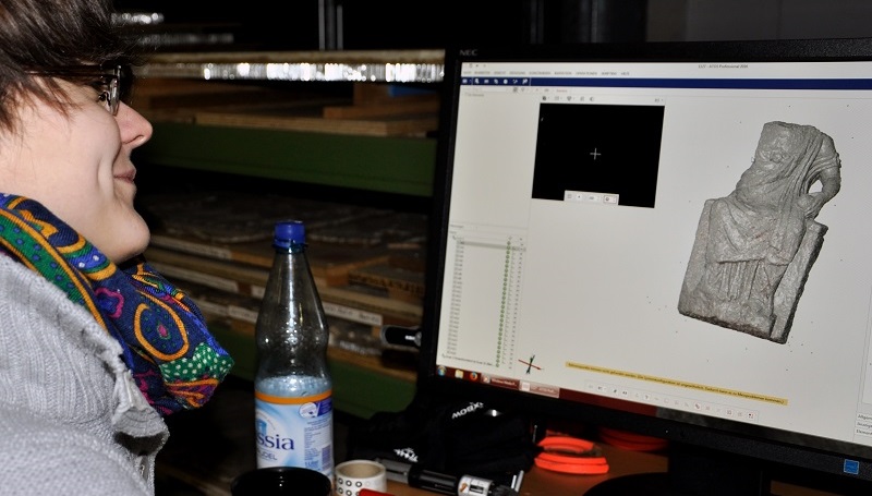 | Prüfung der 3D-Erfassung unmittelbar nach dem Scan-Vorgang (© GDKE/Rheinisches Landesmuseum Trier, Foto: K.-U. Mahler) |