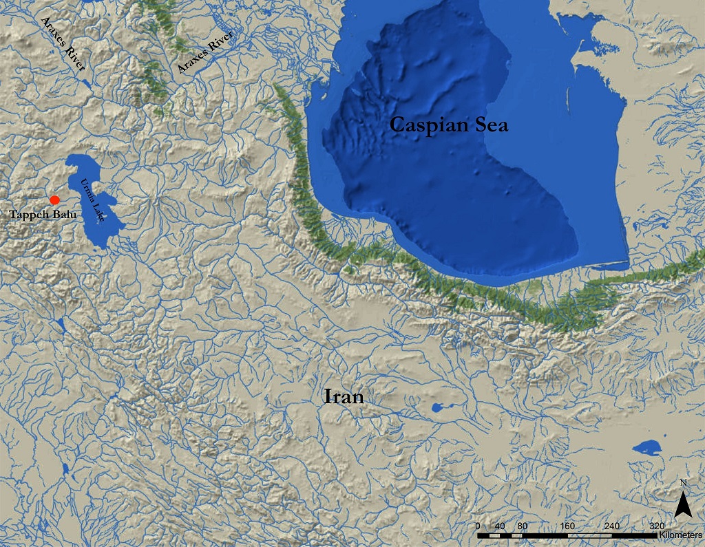 “Tappeh Balu” is located in the province of West Azerbaijan, 7 km north of Urmia city, in the western part of Urmia Lake (Fig 2). It is 215 x 160 x 18 m and about 438 m above sea level. Its geographical location between the Iranian Plateau and Anatolia, in the middle of the network and trade route from the Caucasus to the Zagros area foreground the essential role it played as an interface between Anatolia in the west, the Iranian Plateau in the east, the Caucasus in the north, and Zagros in the south.