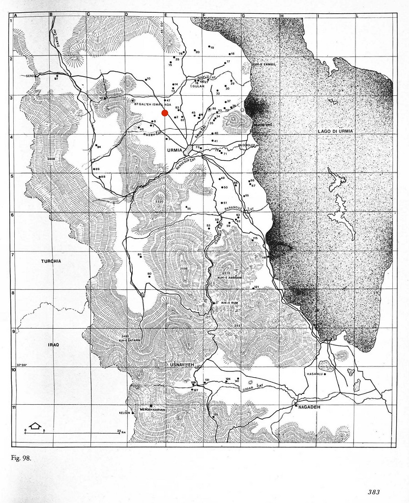 | Fig. 3 - Distribution of the Bronze Age sites and the location of Tappeh Balu on the published map by Italian expedition (Pecorella and Salvini 1984, Fig 98) |